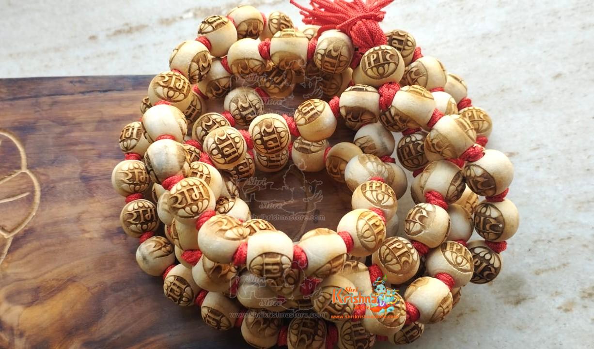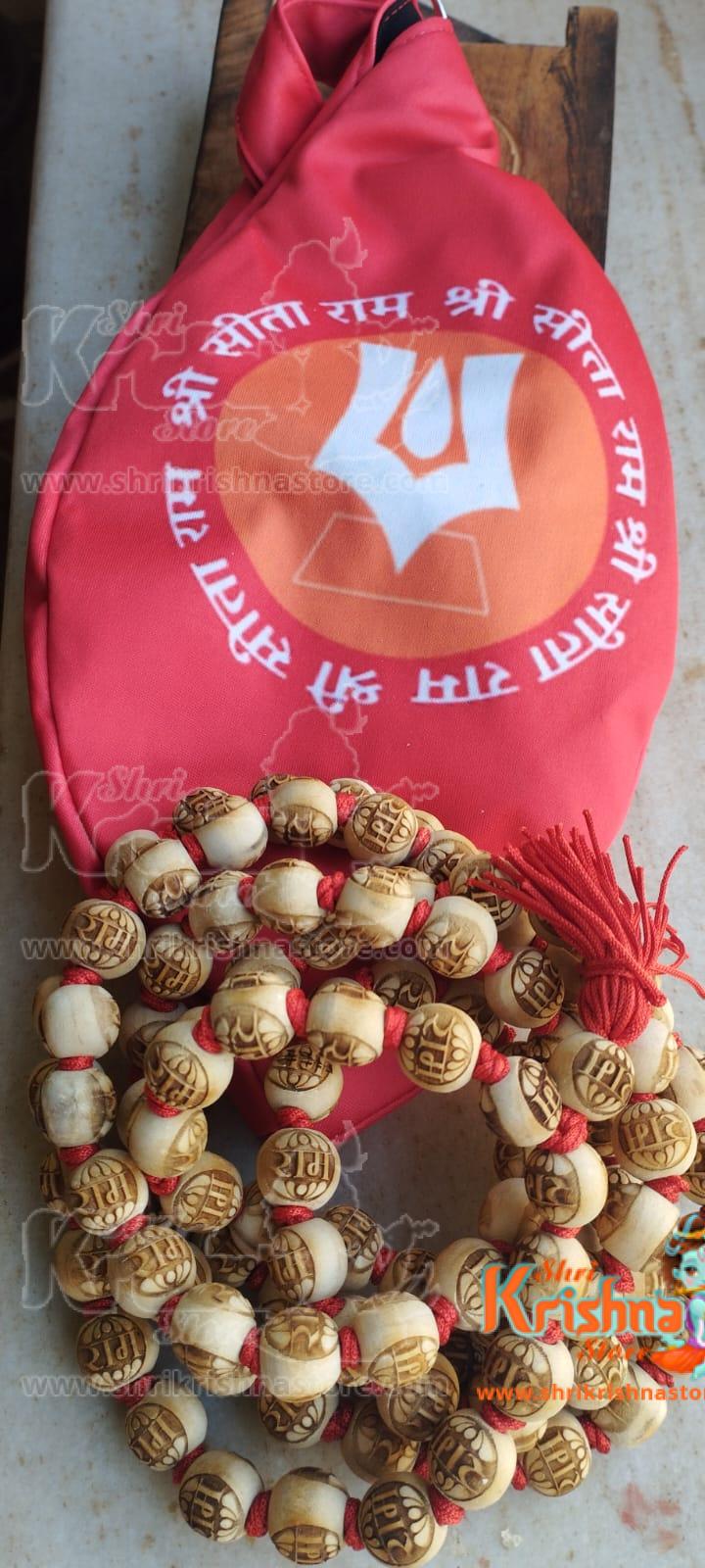 Ram Carved Beads Japa Mala With Sita Ram Japa Bag