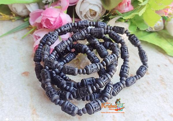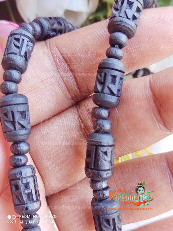 Ram Carved Black Three Round Tulsi Kanthi Mala