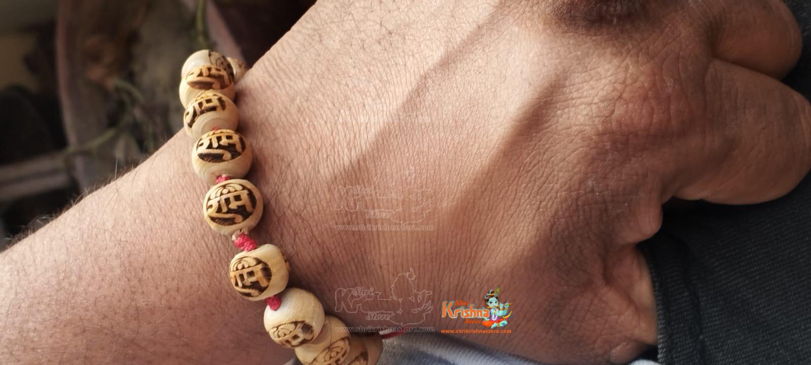 Ram Ram Name Carved Original Round Tulsi Bead Bracelet