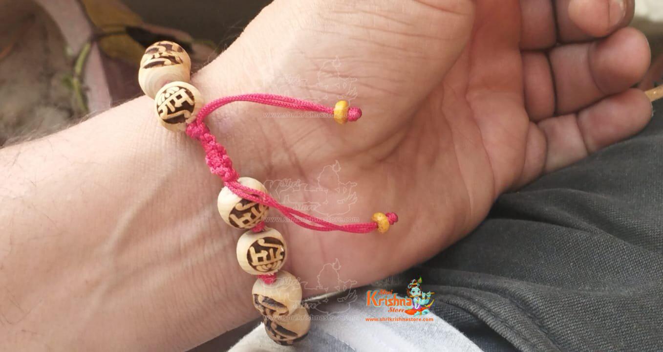 Ram Ram Name Carved Original Round Tulsi Bead Bracelet