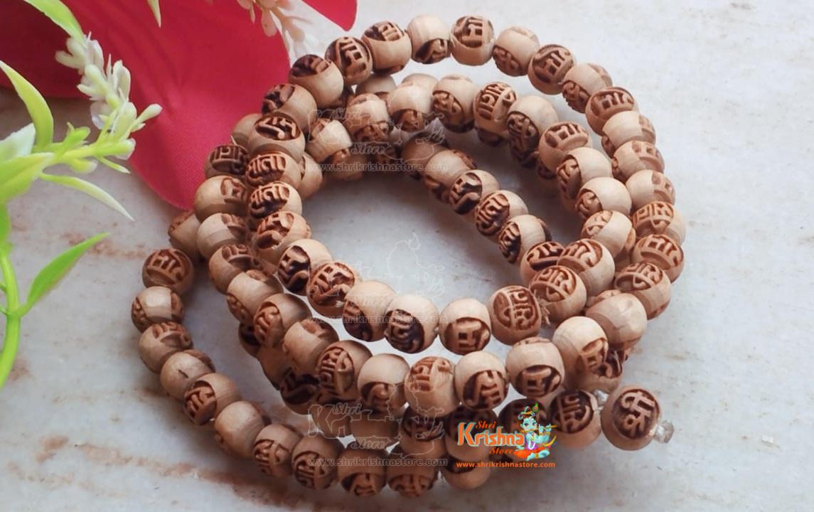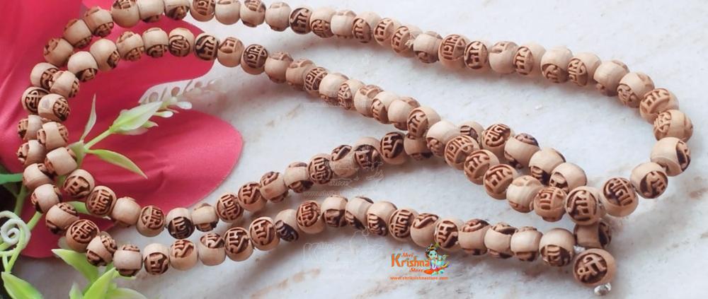 Shri Ram Sita Carved 108 + 1 Tulsi Beads Neck Mala