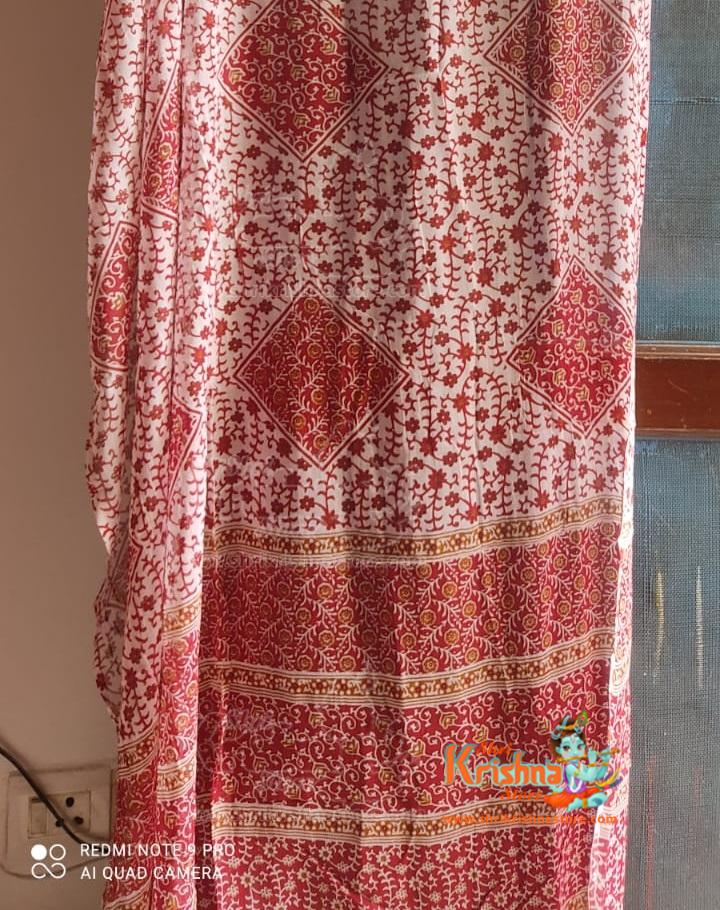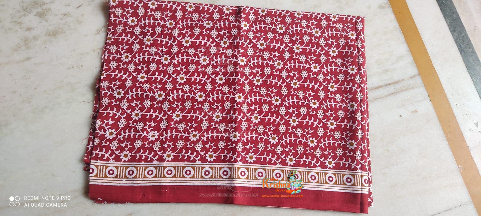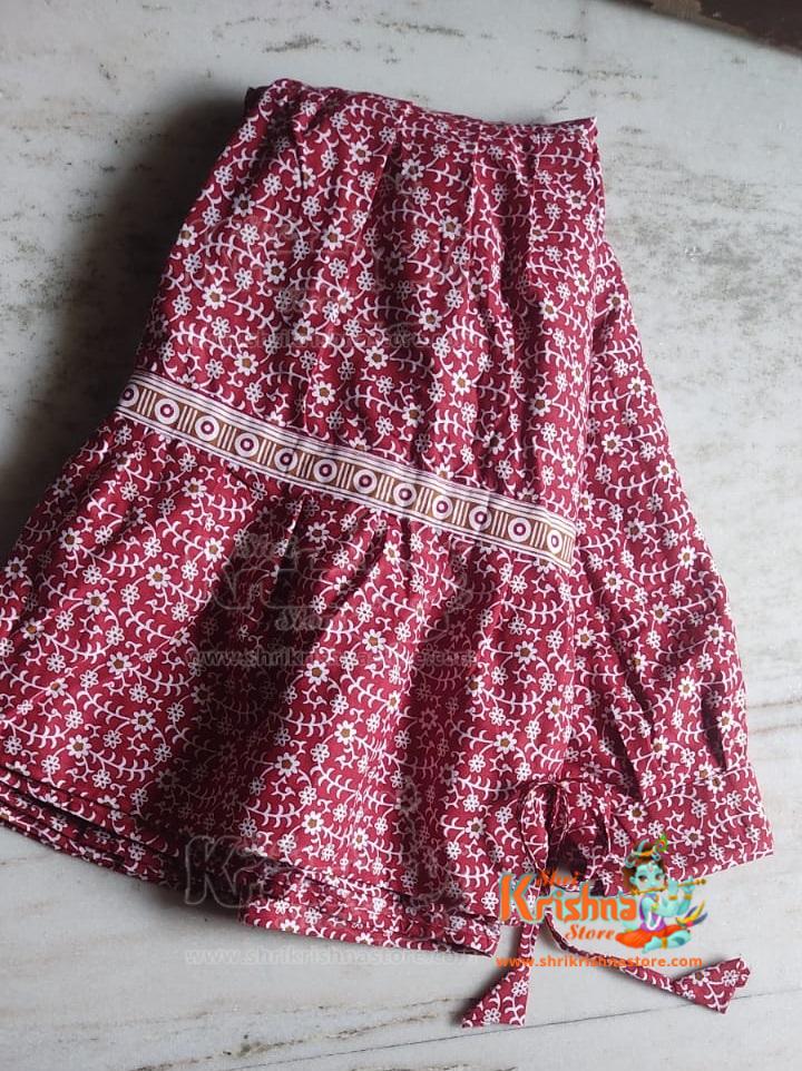 Red Maroon Cotton Gopi Skirt Outfit In White Small flower Pattern