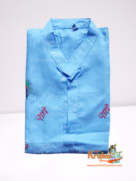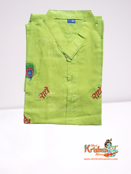 Stylish Shree Radhe Morpankh Embroidary Cotton Printed Long Kurta For Mens-Boys