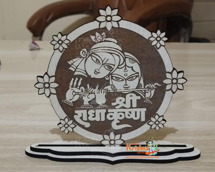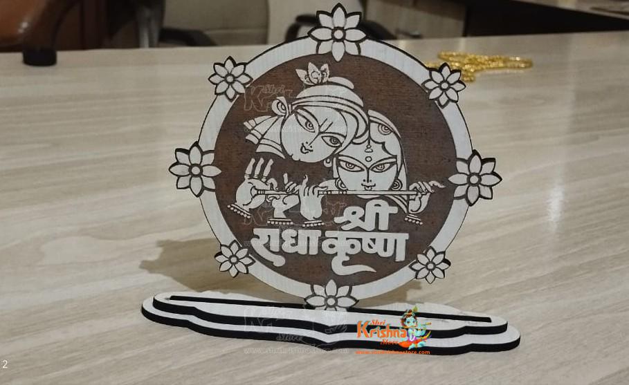 Beautifully Designed Shri Radha Krishn and More Desktop Stand in Wooden