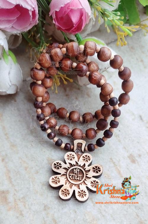 Shri Radha Naam Flower Designed Tulsi Locket Mala