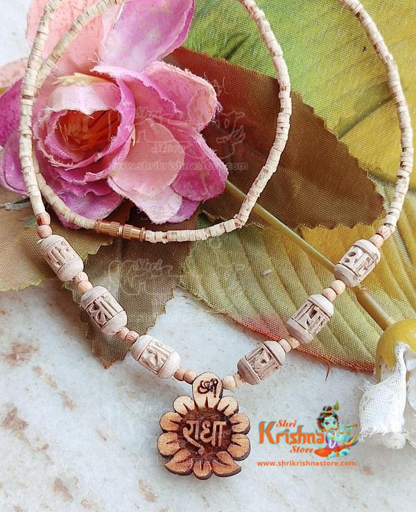Shri Radha Naam Locket Tulsi Kanthi Mala – Tulsi Mala