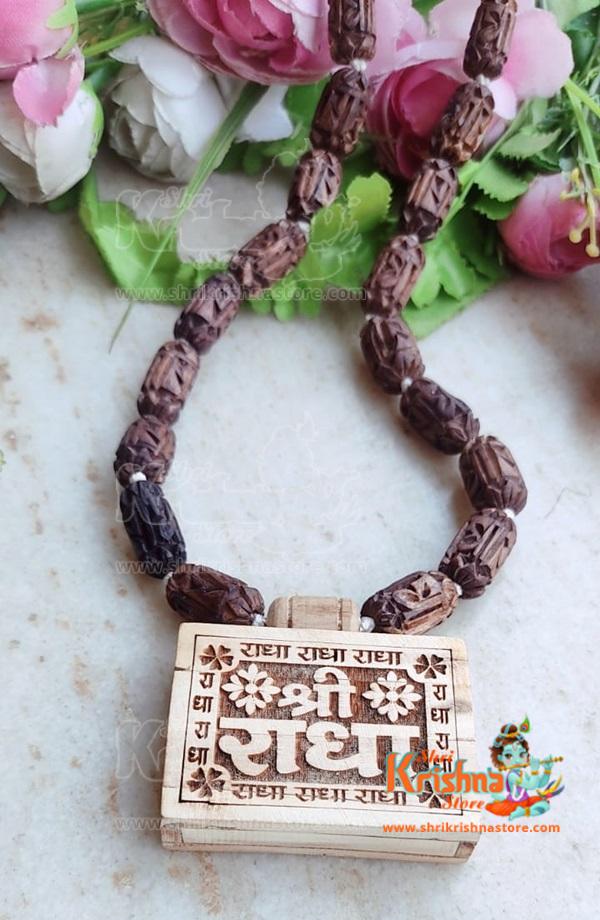 Shri Radha Naam Pure Tulsi Mala With Radha Carved Tulsi Beads