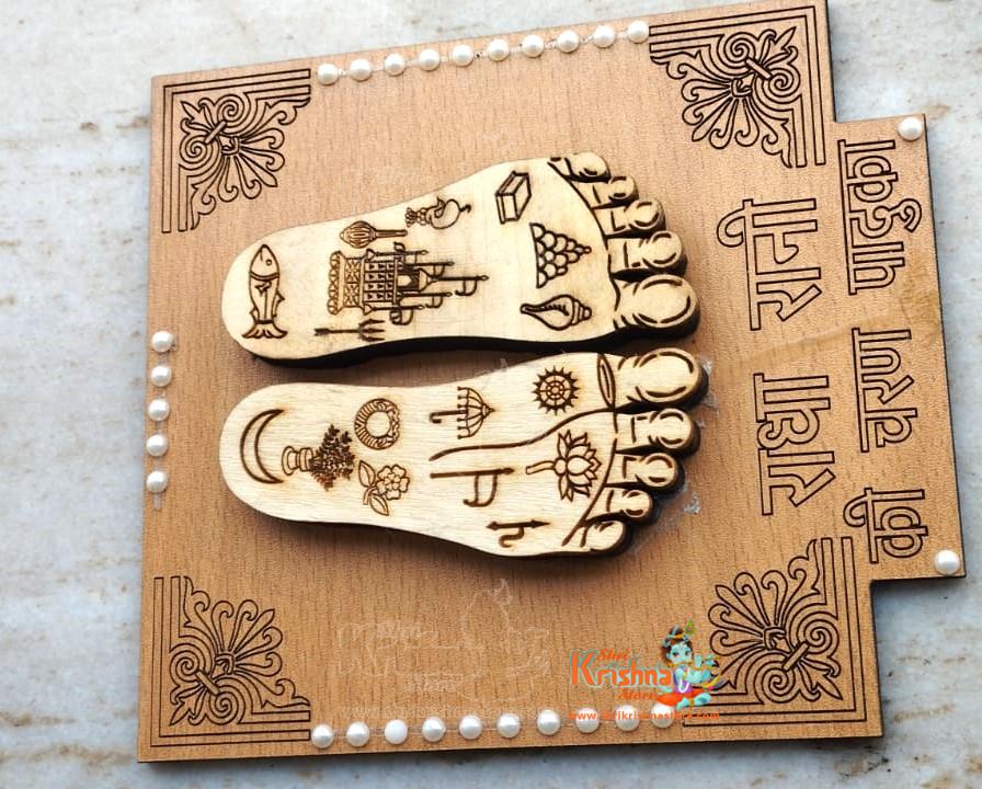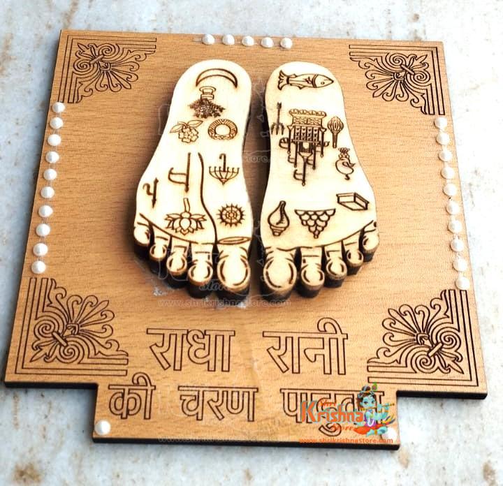 Shri Radha Rani Charan Sewa in neem wood with platform base