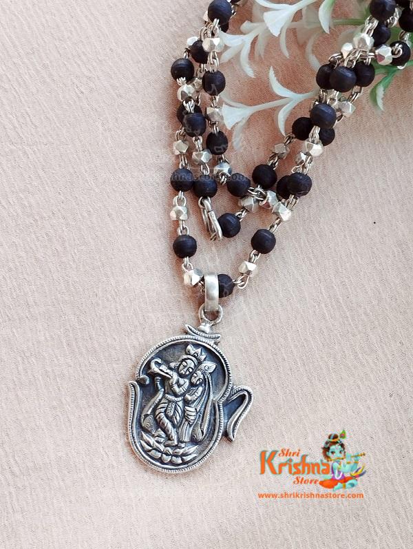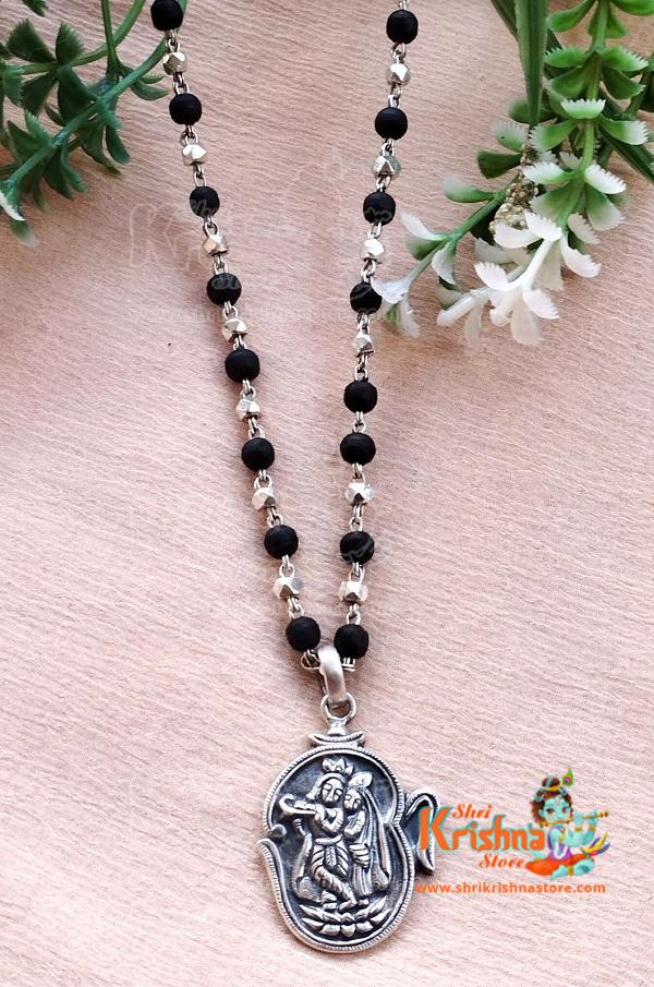 Shri Radha with Krishna Silver Pendant Necklace Mala