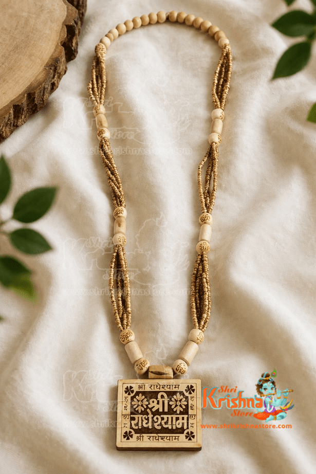 Shri Radhey Shyam Naam Panch Mala with Hand Made Tulsi Bhaktmal Locket Style Mala
