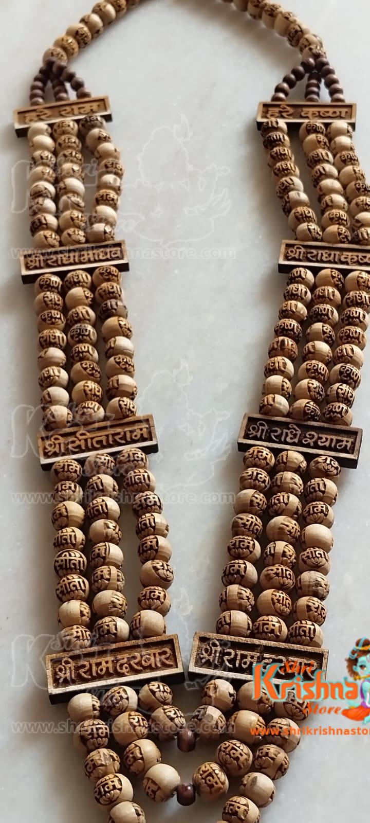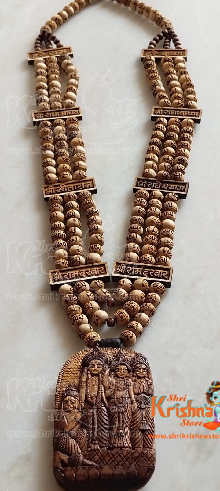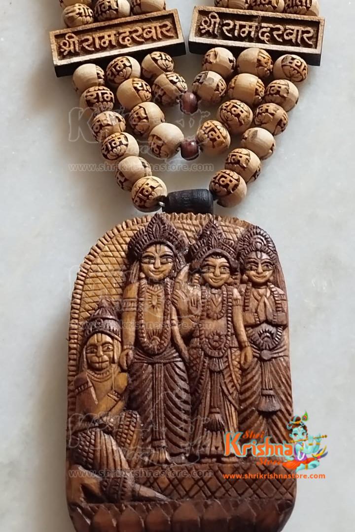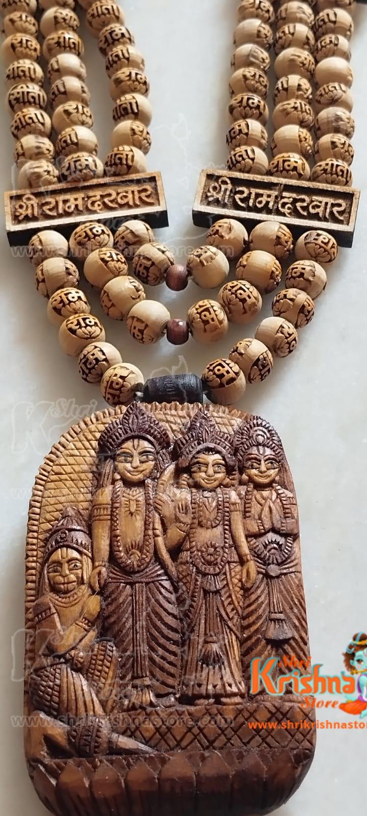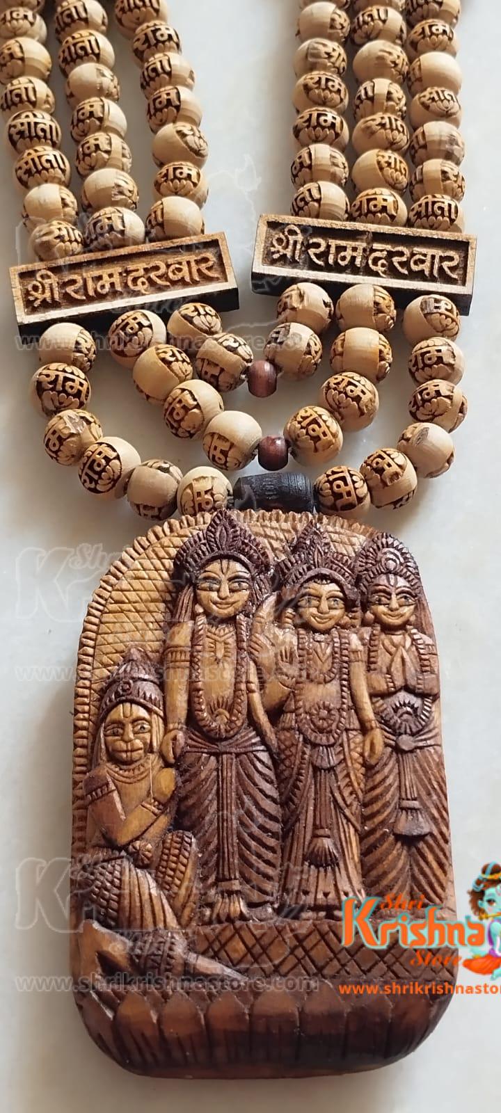 Shri Ram Darbar Big Tulsi Hand Made Locket Mala with Ram carved Tulsi Beads