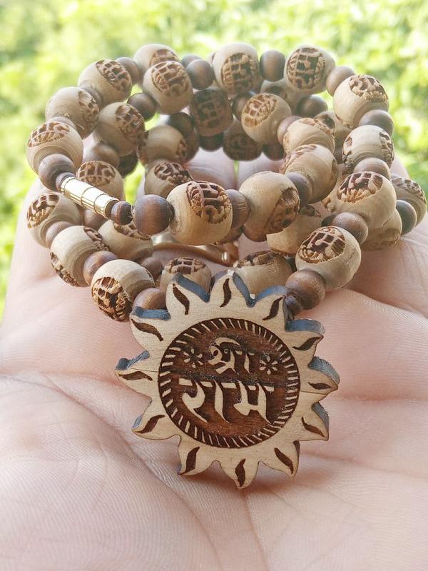 Shri Ram Sun Shaped Tulsi Locket Mala With Ram Naam Beads – Premium