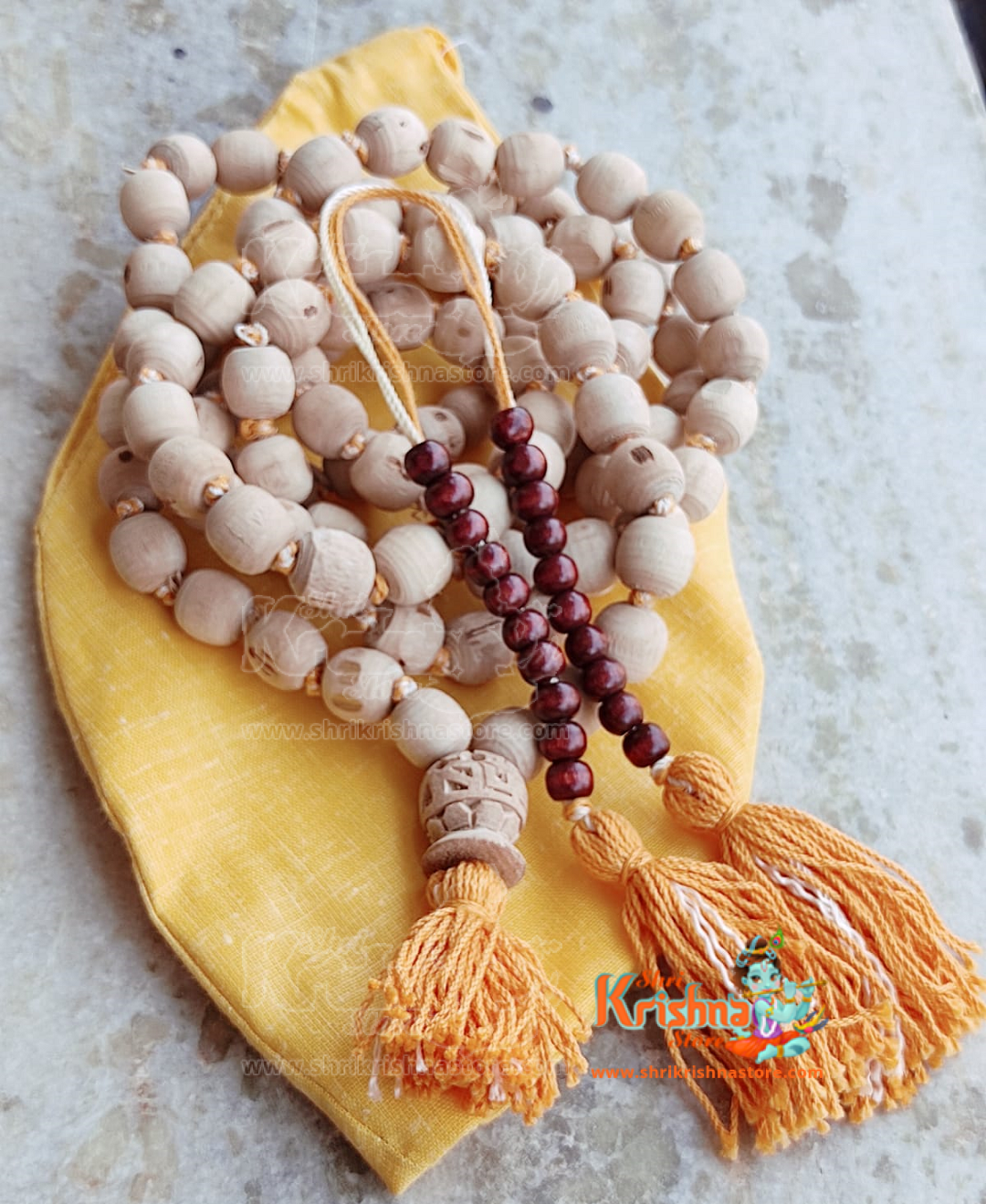 Shyama Tulsi Japa Mala in Yellow Tassel with Krishna Guru Bead and Yellow Gomukhi- Supper Fine Quality
