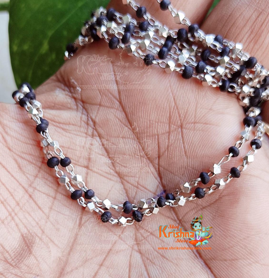 Silver Black Tulsi Double Layer Kanthi Mala – Classic
