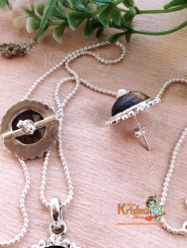 Silver Chain Tulsi Pendant with Tulsi Earrings Set