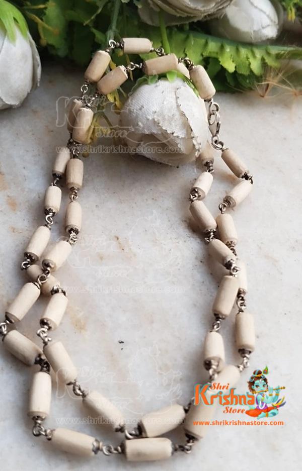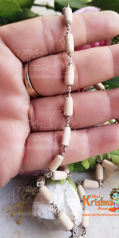 Silver Fine Quality Pure Tulsi Beads With flower Capped Neck Mala