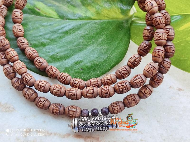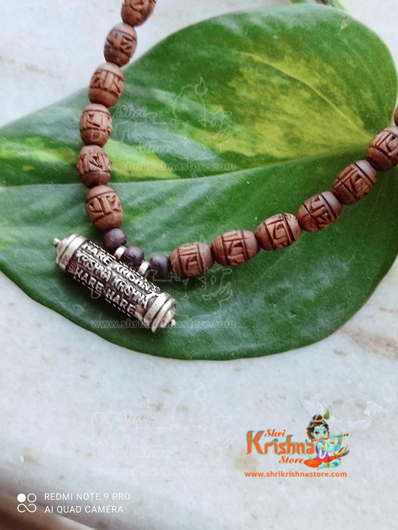 Silver Hare Krishna Maha Mantra Narshima Kavach With Radha Caved Kanthi Mala