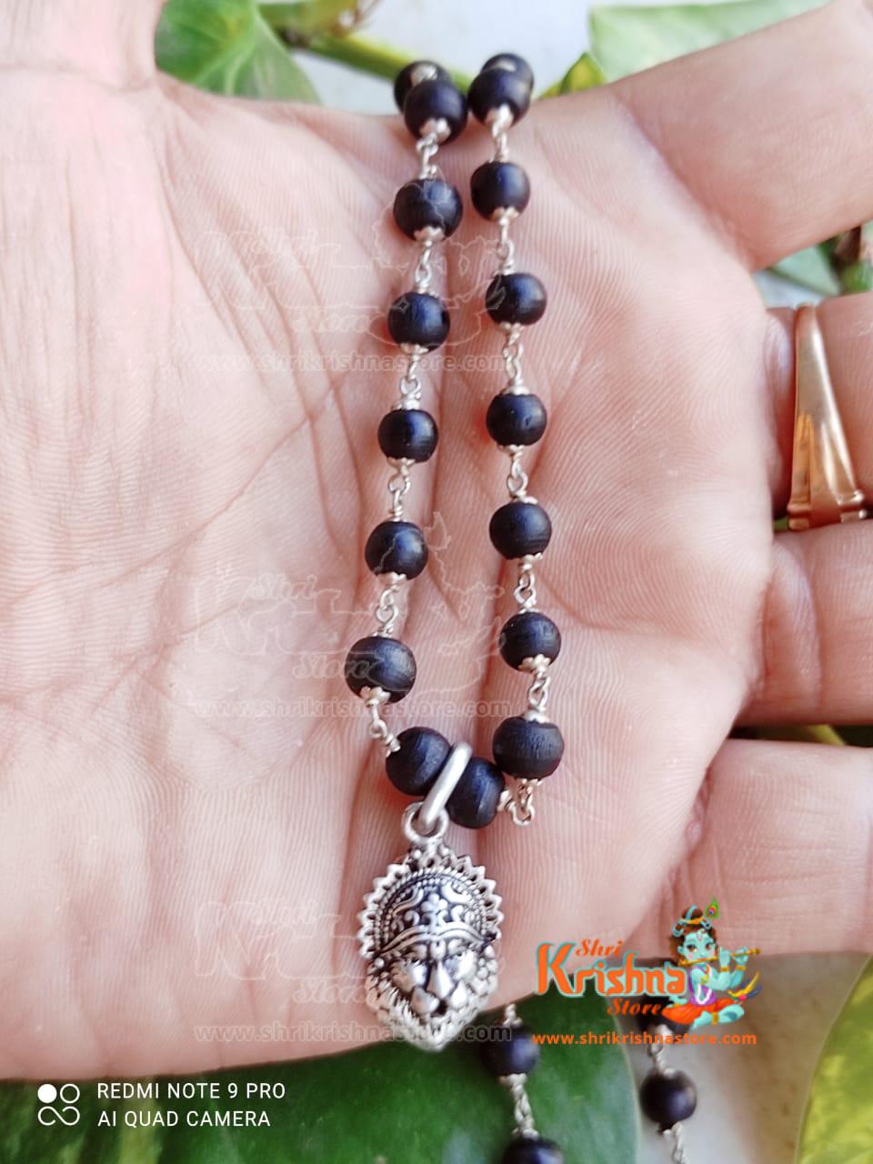 Silver Flower Capped Round Beads Tulsi Kanthi With Sterling Silver Divine Narasimha Pendant