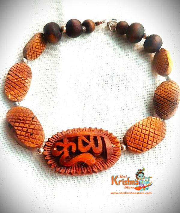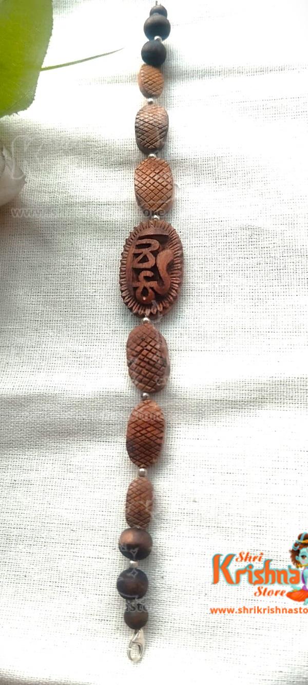 Silver Sterling Tulsi Beads Beautiful Hand Made Krishna Design Bracelet