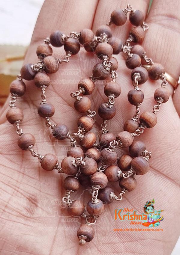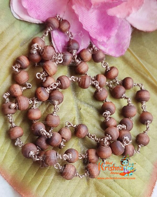Silver Tulsi Mala in Flower Capped 54 + 1 Beads