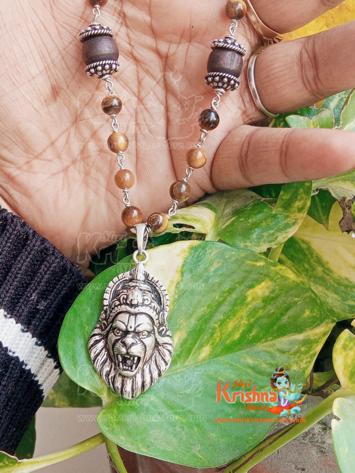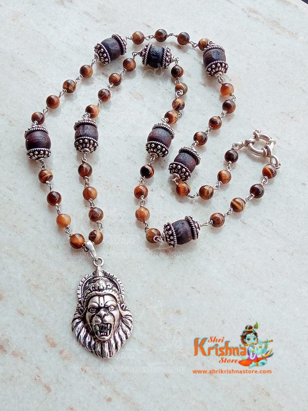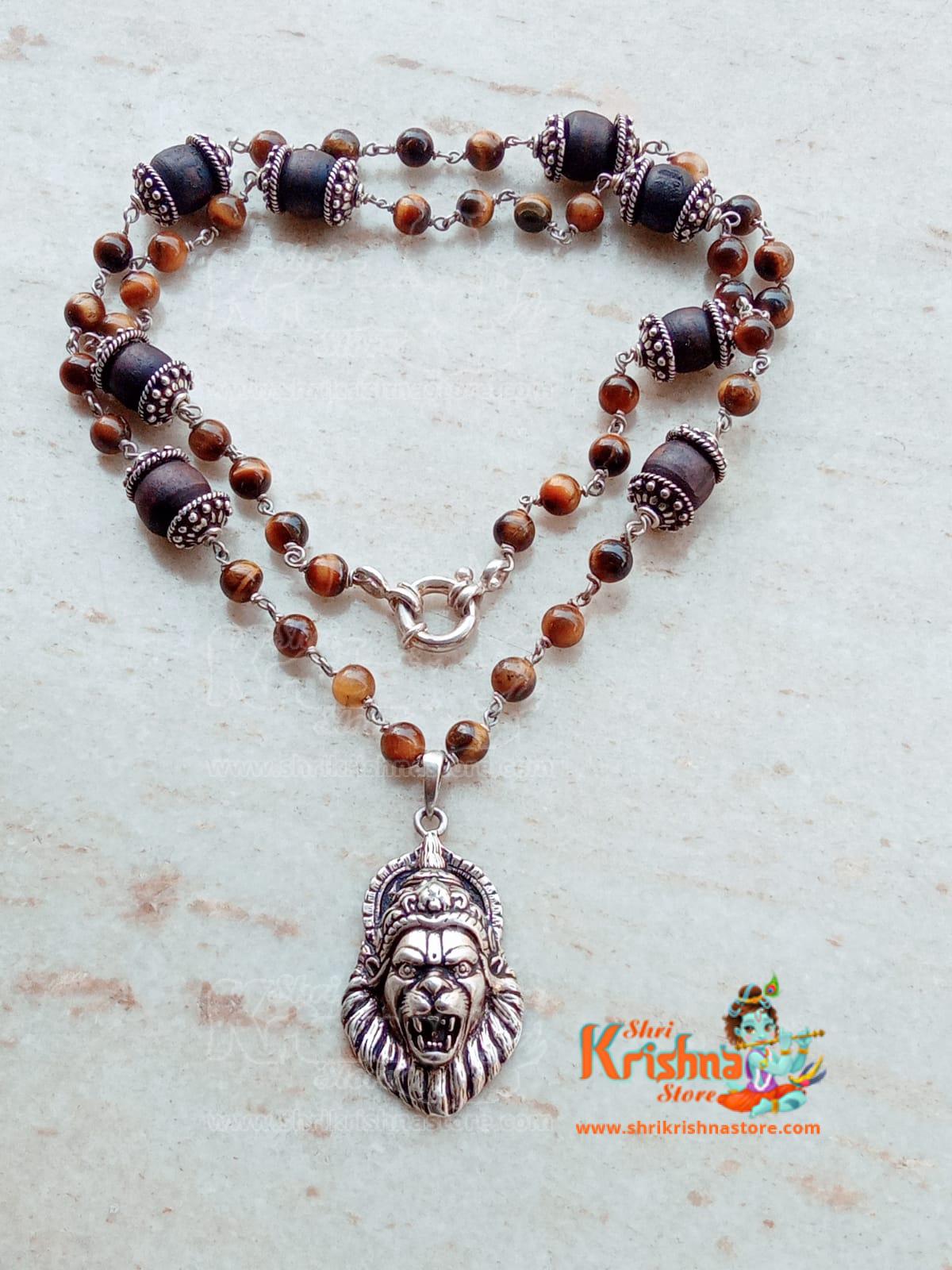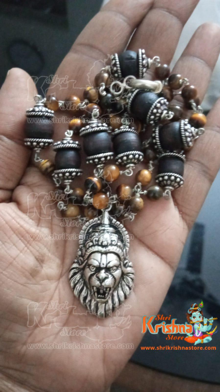 Sterling Silver Narasimha Pendant With Heavy Sterling Silver Capped Tulasi Beads – Classic / Trendy