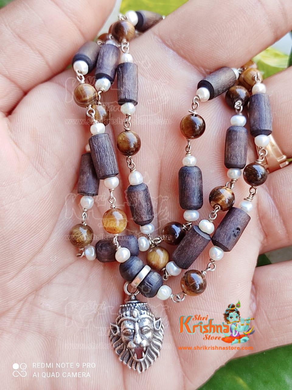 Sterling Silver Narasimhadev Prabhu Locket With Original Tiger Crystal balls – Premium / Divine