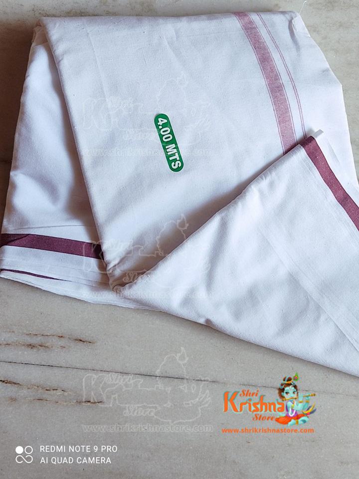 Thin Magenta Color Border , Thick Cotton Dhoti – Premium