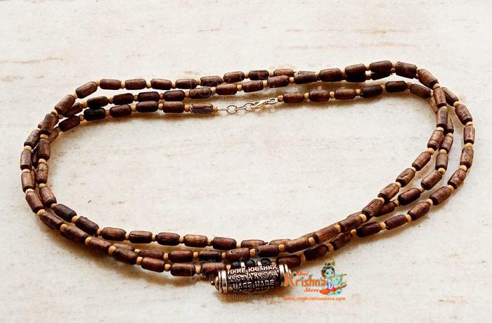 Three Round ShyamaTulsi Kanthi Mala With Hare Krishna Maha Mantra Sterling Kavach – Mahamantra Power