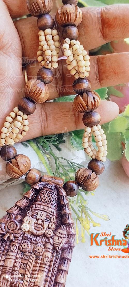 Tirupati Balaji Handmade Carving Tulsi Locket Mala