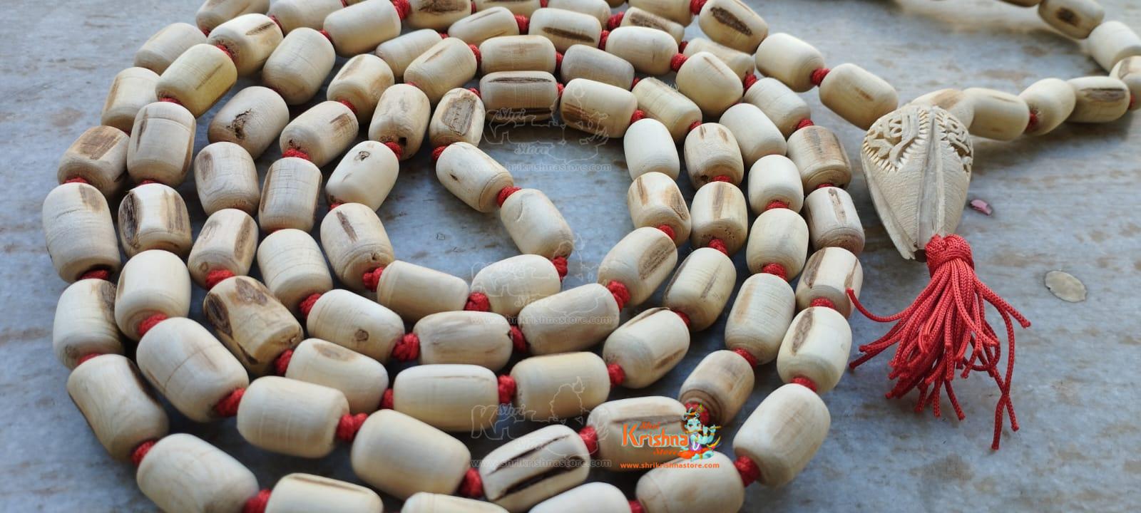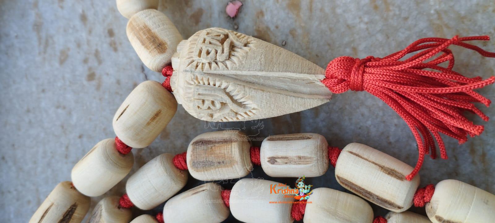 Barrel beads Tulsi Japa Mala with Radha Krishna Lotus bud Guru Bead – Supper Fine Quality