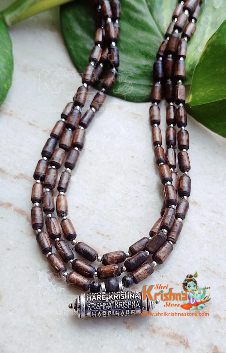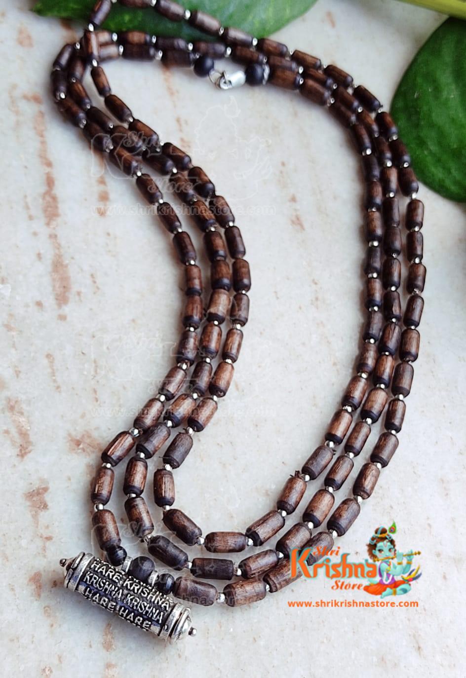 Tulsi Kanthi Mala Three Round With Silver Maha Mantra Embossed Kavach – Premium / Classic