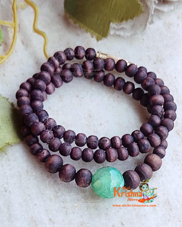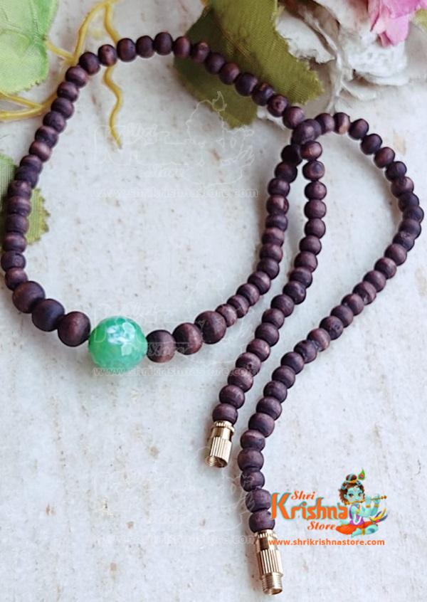 Tulsi Kanthi Mala with Aquamarine Crystal Stone – Classic