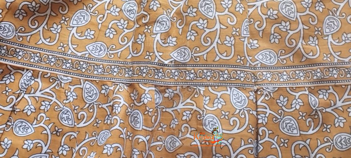 Turmeric yellow and white leaf printed gopi skirt top with dupatta in cotton fabric