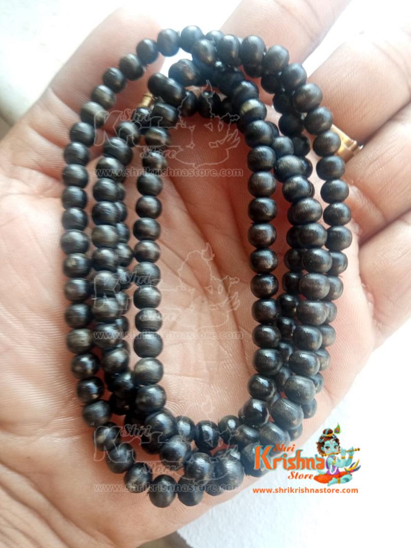 Two Round Tulsi Beads Natural Black Tulsi Kanthi Mala