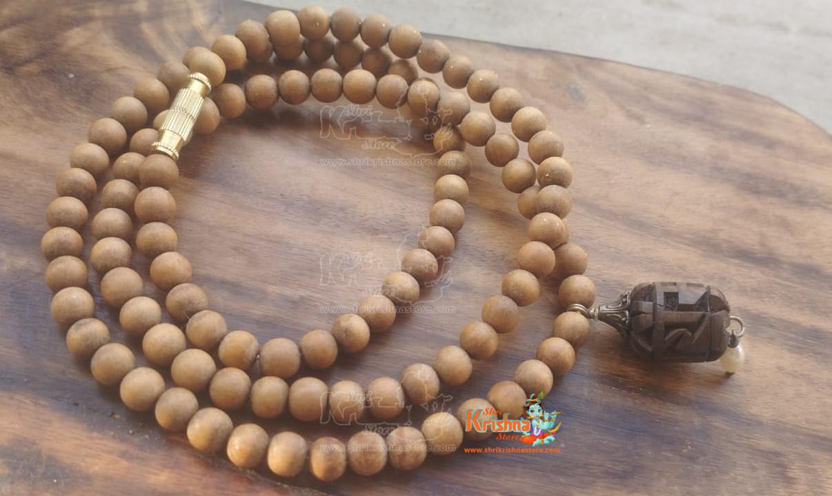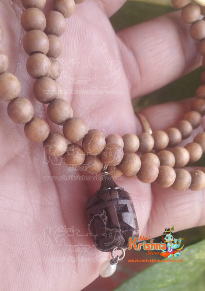White Sandalwood Original Neck Mala with Pretty Small Ram Carved Beads